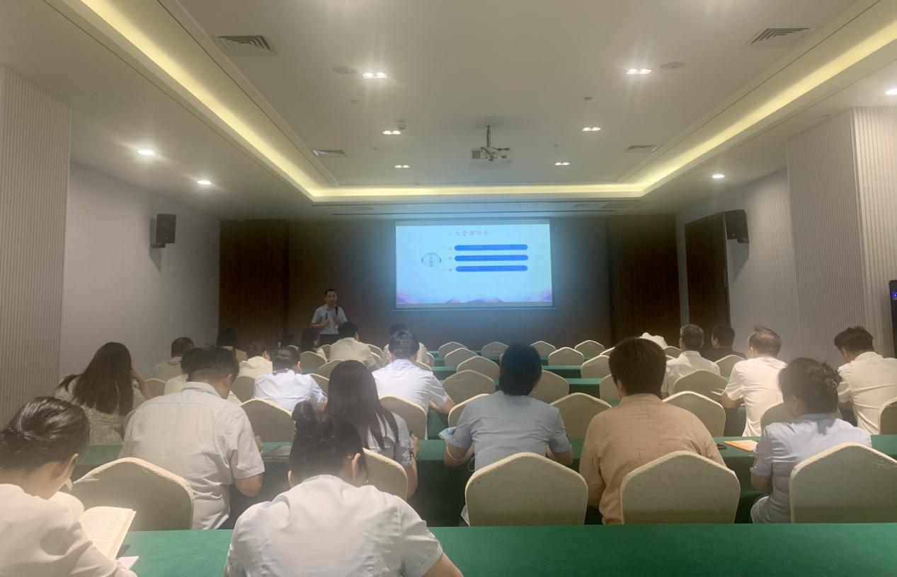 為進(jìn)一步提升飯店管理效能,提高飯店員工對(duì)標(biāo)準(zhǔn)化管理體系的全面認(rèn)識(shí),7月13日上午,飯店組織開(kāi)展“三標(biāo)”體系基礎(chǔ)知識(shí)培訓(xùn),邀請(qǐng)物業(yè)公司總經(jīng)理耿森主講,飯店中層以上管理人員及各部室、子公司相關(guān)工作人員參加。